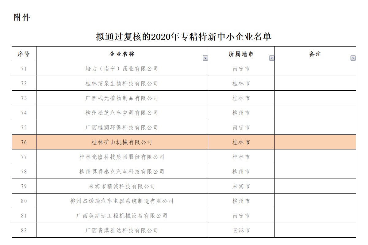 近日,自治區(qū)工信廳公布了2020年專精特新中小企業(yè)復(fù)核結(jié)果,桂林礦機(jī)憑借卓越的技術(shù)創(chuàng)新能力和突出的市場(chǎng)表現(xiàn),被列入復(fù)核通過(guò)名單。
